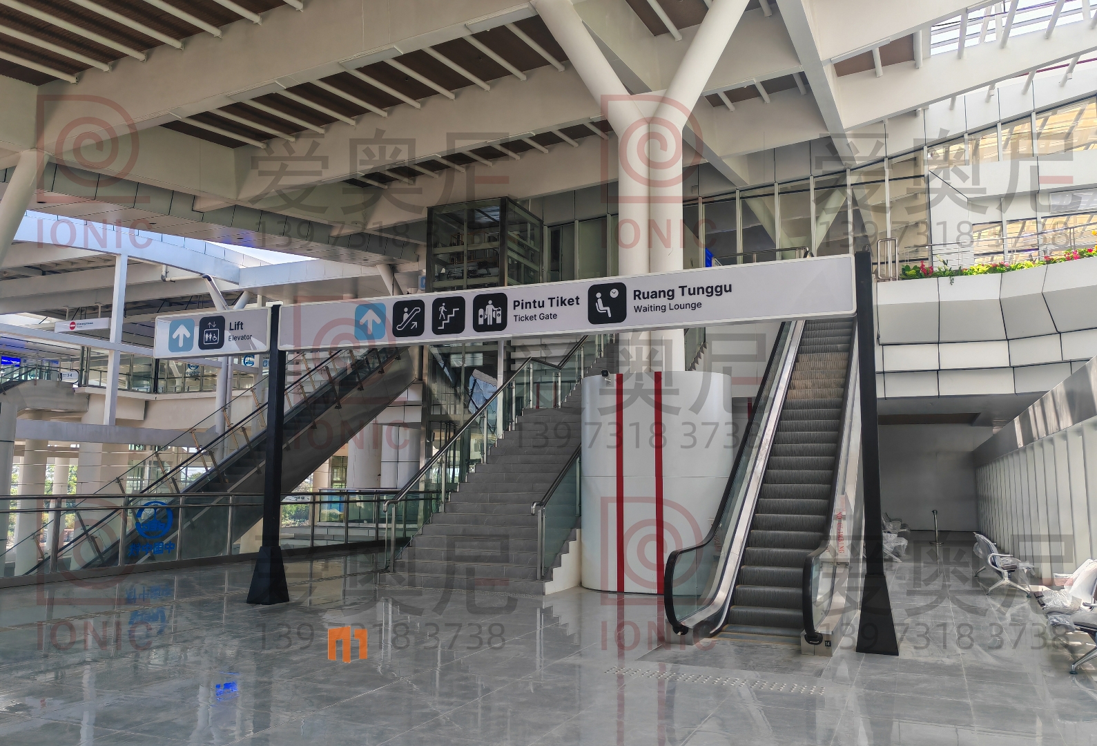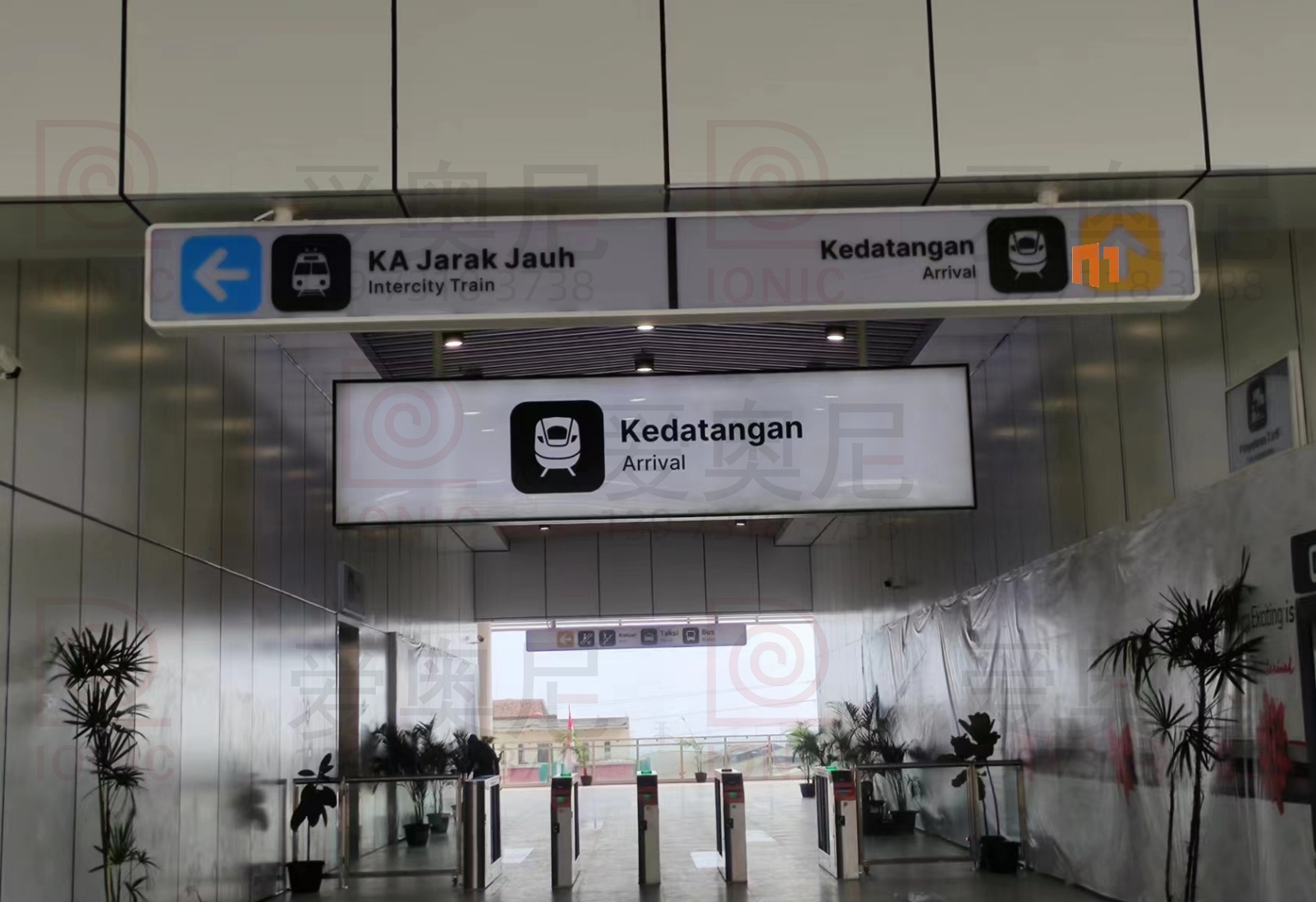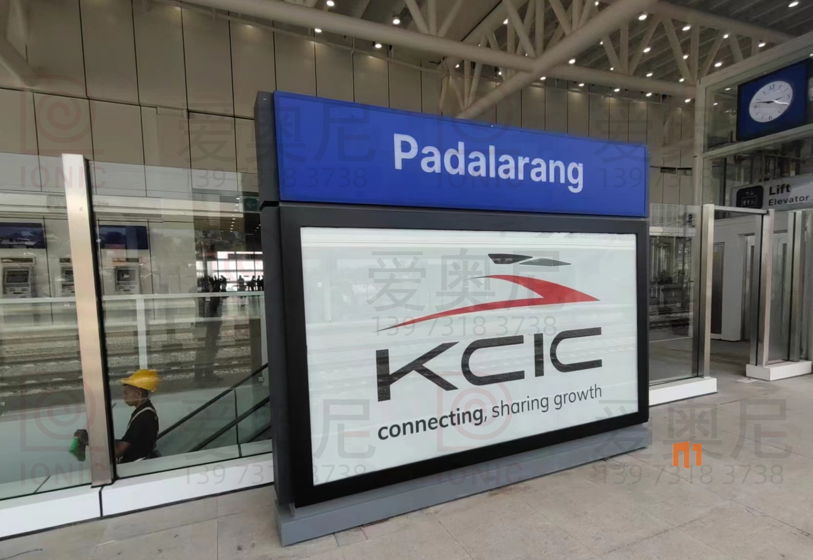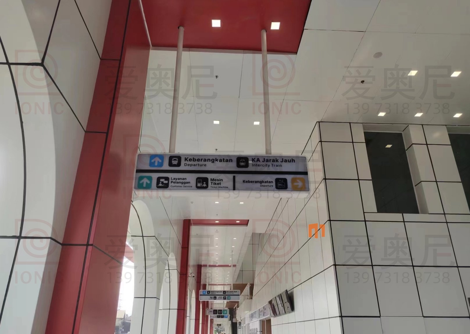 雅萬高鐵是中國共建“一帶一路”倡議和印尼“全球海洋支點(diǎn)”構(gòu)想對接、中印尼兩國務(wù)實(shí)合作的旗艦項(xiàng)目,全線采用中國技術(shù)、中國標(biāo)準(zhǔn),也是印尼和東南亞第一條高速鐵路。雅萬高鐵連接印尼首都雅加達(dá)和旅游名城萬隆,線路全長142.3公里,最高運(yùn)行時(shí)速350公里,始自雅加達(dá)市,途經(jīng)勿加泗市、勿加泗縣、卡拉旺縣、普旺加達(dá)縣、西萬隆縣、芝馬墟市、萬隆縣,終至萬隆市,設(shè)有哈利姆、卡拉旺、帕達(dá)拉朗、德卡魯爾4座車站。愛奧尼助力中鐵三局為帕達(dá)拉郎站提供站內(nèi)所有靜態(tài)標(biāo)識的生產(chǎn)和安裝指導(dǎo)服務(wù)。